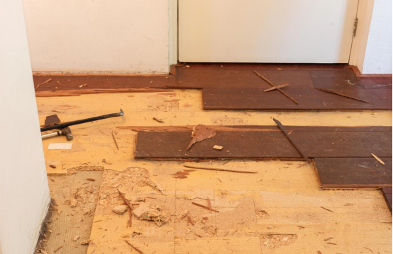 ②地面不平:室内地砖隆起、地板凹陷,行走时明显晃动;